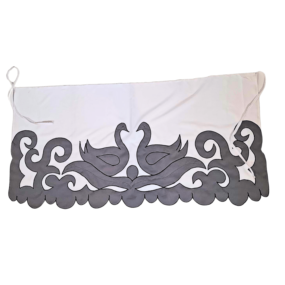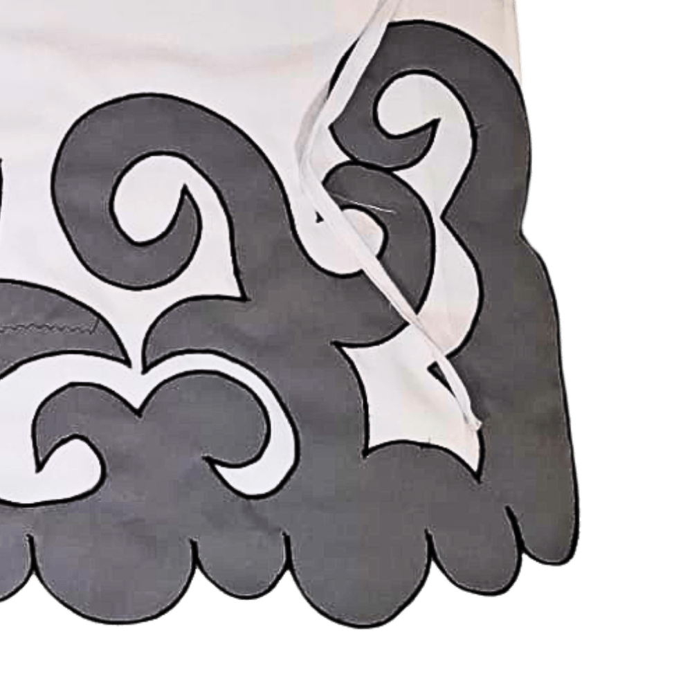 Deze pangi is uitgevoerd in een tijdloos wit met contrasterende grijs-zwarte patronen die direct in het oog springen. De elegante krullen en vloeiende lijnen symboliseren natuur, spiritualiteit en verbondenheid – een subtiele verwijzing naar de kracht en zachtheid van de vrouw. De vorm van de motieven doet denken aan vogelachtige silhouetten, die staan voor vrijheid en groei. Het sierlijke patroon straalt balans en harmonie uit – precies wat elke vrouw nodig heeft in haar dagelijks leven.
